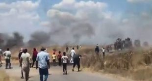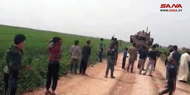 واعترض أهالي قرية تل أحمد أمس رتلاً مؤلفاً من خمس مدرعات أمريكية ترافقها سيارة لميليشيا “قسد” حاول المرور عبر القرية حيث رشقوه بالحجارة وكسروا زجاج السيارة التابعة للميليشيا وطردوه خارج المنطقة.