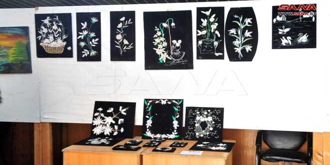 المعرض الذي أقامه المكتب الفرعي لنقابة المعلمين في السويداء بالتعاون مع مديرية التربية شهد مشاركة عدد من خريجي المعهد المتوسط للفنون التشكيلية بالإضافة الى غير المختصين من ذوي المواهب الفنية.