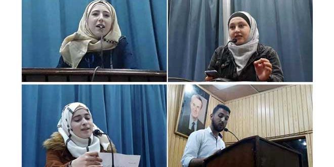 وقدمت الشابة نور عساف نصاً بعنوان (سواء رضيت أم لم ترض) عاتبت فيه الآخر الذي غادرها دون اكتراث لمشاعرها الرقيقة في حين شارك محمد نور الأحمد وريناز حجواني من طلاب كلية الهندسة بجامعة البعث بقصيدة حوارية إحياء لفن النقائض بطريقة المعاتبة لا الهجاء كما اعتاده جمهور الأدب.