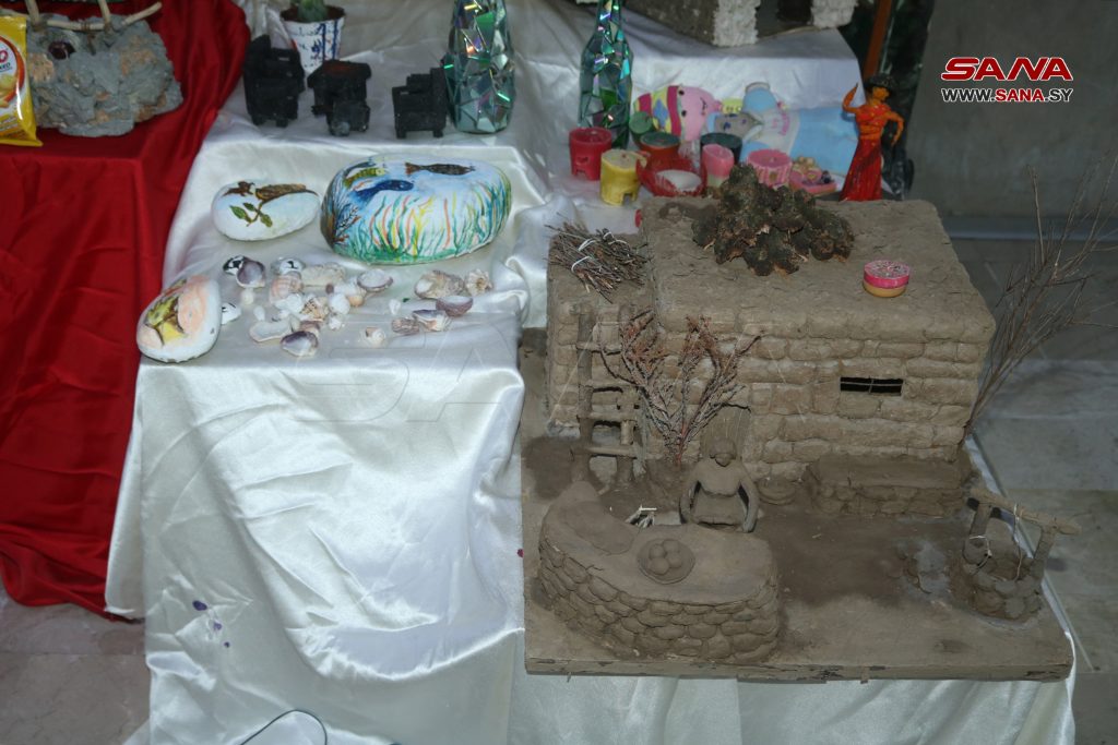 كما تضمن المهرجان افتتاح معرض للأعمال اليدوية والفنون التشكيلية حيث أوضح شادي عميري رئيس قسم الفنون الجميلة بدائرة المسرح المدرسي أن المعرض عبارة عن تشكيل فني لوني نوعي يتميز بعدم التكرار وإظهار المواهب في الرسم والفنون التشكيلية ومهارات يدويه من نحت وصلصال وتم انتقاء الأعمال المتميزة لعرضها مضيفا أنه تم الابتعاد قدر الإمكان عن المواضيع التي تطرحها الحرب تفاديا لأي أثر نفسي قد تخلفه لدى الطلاب.