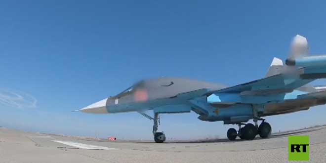 نشرت وزارة الدفاع الروسية اليوم مقاطع فيديو تظهر قيام طائرات قاذفة روسية من طراز (سو 34) بقصف مواقع للمتطرفين الأوكرانيين ضمن إطار العملية العسكرية الخاصة لحماية دونباس.