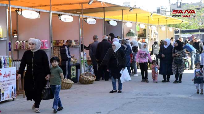 وأشار يامن كرزون إلى أن شركتهم تقدم مختلف أنواع السمن والدبس والزيوت الطبيعية والخل بأسعار مخفضة تتراوح بين 30 و 40 بالمئة وتحدث شكري الجديع عن مشاركته في بيع المنتجات الغذائية وتقديم عروض وتخفيضات على كل أنواع الضيافة بمناسبة اقتراب عيد الفطر.