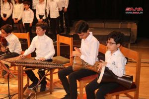 وخلال الفعالية التي أقيمت على خشبة مسرح دار الأسد للثقافة قدمت فرقة كورال سنابل المحبة التابع لصالة سليمان العجي مجموعة من المعزوفات والأغاني بمشاركة 30 كورالاً و13 عازفاً وعازفة استخدموا فيها آلات الكمان والناي والعود والقانون والإيقاع والبيانو والغيتار بإشراف ايفا عبد الرحمن من بينها أغاني (زوري بيوتنا ياشمس الأطفال) و(حلوة يانيالها) و(ياحلوة شعرك داري) وفقرة قدود حلبية.