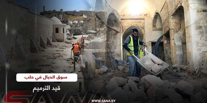 استمرار أعمال ترميم سوق الحبال في حلب القديمة