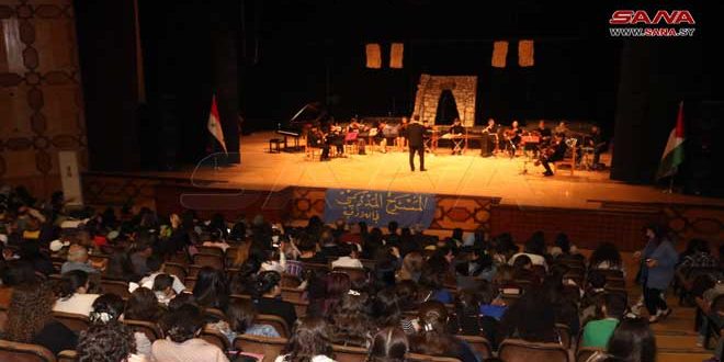 وقدمت فرقة الطلاب التابعة لصالة سليمان العجي المكونة من 15 طالباً وطالبة بإشراف المدرب نصري بغدود اغاني ومقطوعات موسيقية منها “ذكرياتي” لمحمد قصبجي و”يا محلا الفسحة ياعيني” من التراث و”غنيلي شوي” لزكريا محمد بالإضافة إلى عزف مقطوعة سماعي كورد وأعمال ارتجالية على آلات الكمان والتشيللو والقانون والعود بإشراف وقيادة المدرب النميري محمد.