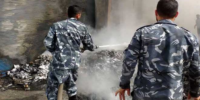 أخمد عناصر فوج إطفاء دمشق اليوم حريقاً نشب ضمن مستودع بلاستيك على طريق دمشق درعا واقتصرت الأضرار على الماديات.
