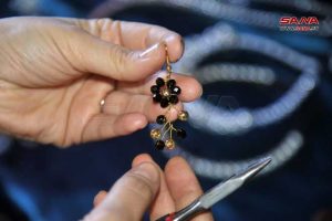 وروت صقر 34 عاماً وأم لثلاثة أطفال في حديثها لمراسلة سانا أن تصميم إسوارة من الخرز الملون لابنتها من قطعة حلي قديمة لاقى إعجاب عائلتها ما دفعها لتأسيس مشروعها بمساعدة مقاطع الفيديو التعليمية عبر الانترنت.