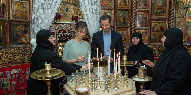 وهنأ الرئيس الأسد والسيدة أسماء الأهالي والراهبات والأطفال الأيتام بعيد الفصح المجيد.