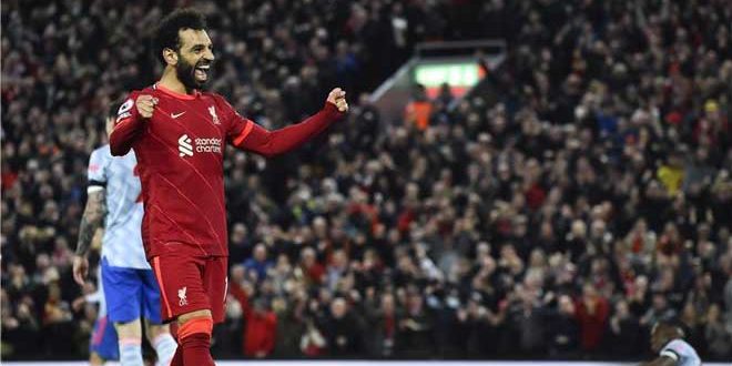 ويتصدر صلاح 29 عاماً قائمة هدافي الدوري الانكليزي برصيد 22 هدفاً.