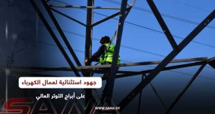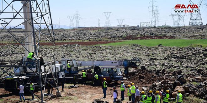جهود استثنائية لعمال الكهرباء على أبراج خطوط التوتر العالي بريف دمشق