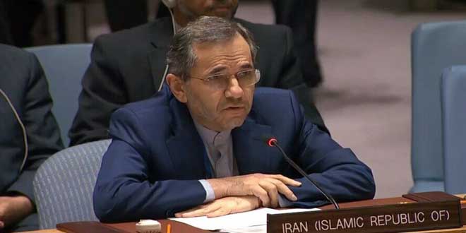 وقال سفير ومندوب إيران الدائم لدى منظمة الأمم المتحدة مجيد تخت روانجي خلال اجتماع لمجلس الأمن الدولي لمناقشة الأوضاع في الشرق الأوسط ومستجدات القضية الفلسطينية خصوصاً إن “اعتداءات الكيان الصهيوني المتكررة على سيادة ووحدة الأراضي السورية وتهديده السافر باستخدام القوة ضد سائر دول المنطقة تشكل تهديداً حقيقياً لسلام وأمن المنطقة”.