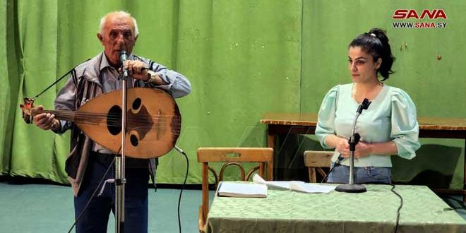 حسن إسماعيل الباحث في التراث وعضو اللجنة الإقليمية لإحياء التراث قدم وصلات غنائية تراثية مع الشابة يارا معلا يرافقها العزف على العود “أم الزلف، يامشمل، جبلنا الأخضر، يامدقدق ابن عمي، كان الناس يرددونها في عيد رأس السنة السورية الذي يمتد من أول نيسان حتى العاشر منه.