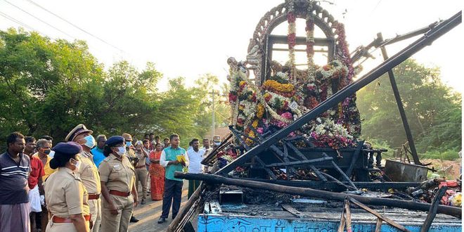 ونقلت وكالة شينخوا عن السلطات المحلية قولها اليوم: “وقع الحادث لدى اصطدام عربة كانت تتحرك في موكب خلال مهرجان بسلك كهربائي عالي الجهد في منطقة ثانجافور بولاية تاميل نادو ما أدى إلى مصرع عشرة أشخاص على الفور”.
