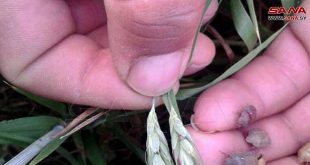 ظهرت أول إصابة بآفة السونة التي تصيب محصول القمح في أحد حقول مدينة نوى بريف درعا.