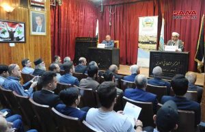 وقدم الدكتور محمد شريف الصواف رئيس جامعة بلاد الشام في مجمع الشيخ أحمد كفتارو في محاضرته عرضاً تاريخياً للعلاقة العضوية التي تربط مدينتي دمشق والقدس لافتاً إلى أنه لا توجد لحظة تألمت القدس فيها إلا وهبت دمشق لنصرتها ولا توجد لحظة تعافت فيها القدس إلا وكانت دمشق هي السبب في ذلك.