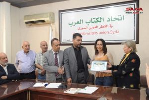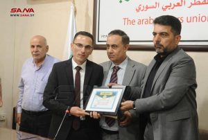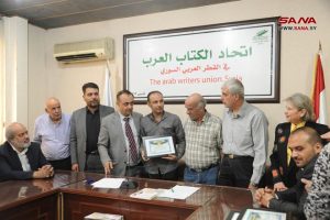 مدير مؤسسة أرض الشام باسل الدنيا لفت إلى أهمية التعاون مع الاتحاد في مجال الثقافة نظراً لأهمية خلق جيل من الأدباء الشباب يؤمن بالمقاومة ويكرس قضيتها في أدبه.