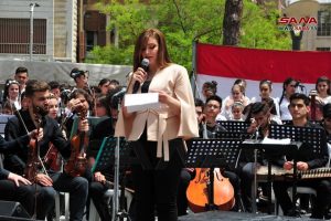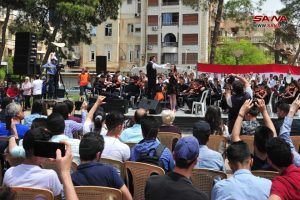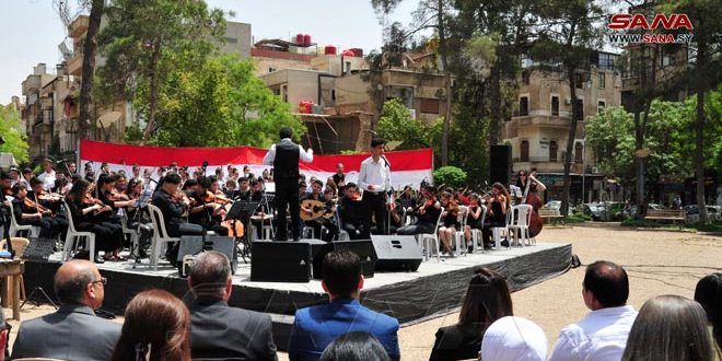 فيما عرجت مديرة الأنشطة الفنية والرياضية بوزارة التربية لانا زخور لأهمية الموسيقا ودور الحفلات الموسيقية كبعد ثقافي حضاري ووطني وتاريخي من خلال إحياء ذكرى مناسباتنا الوطنية لتبقى حية وخالدة في أذهان الأجيال معتبرة أن اختيار حديقة السبكي بقلب دمشق جاء بهدف نشر الفرح والموسيقا بين عدد أكبر من الناس وجذبهم للاطلاع على هذه الفعاليات والمشاركة بها.