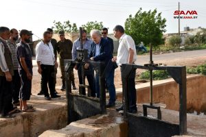 إلى ذلك اطلع الوزير رعد على سير الأعمال في مشروع استبدال شبكة الصرف الصحي في حي باب السباع في مدينة حمص وعلى الأعمال النهائية لمشروع محطة ضخ الكسارة والذي يخدم المنطقة الحرفية وأحياء الكسارة ودير بعلبه وعلى واقع ري محصول القمح في الريف الشمالي لمحافظة حمص والمحاصيل المروية في شبكة ري حمص حماة.