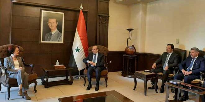 بحث وزير الإدارة المحلية والبيئة المهندس حسين مخلوف مع المدير الإقليمي لبرنامج الأغذية العالمي المسؤول عن الشرق الأوسط وشمال إفريقيا كورين فلايشر والوفد المرافق اليوم سبل تطوير التعاون المشترك وفقاً للأولويات التي تحددها الحكومة السورية.