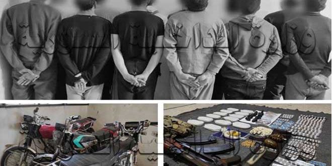 وأوضحت وزارة الداخلية في بيان تلقت سانا نسخة منه اليوم أنه من خلال المتابعة والمراقبة تمكن فرع مكافحة المخدرات في حلب من توقيف 12 شخصاً يقومون بترويج وتعاطي المواد المخدرة ومصادرة المواد التي كانت بحوزتهم وهي ثلاثة كيلوغرامات ونصف الكيلو من مادة الحشيش وألف وخمسمئة حبة دوائية مخدرة مختلفة الأنواع وغرام من مادة الأتش بوز المخدرة وبندقيتان حربيتان مع جعبة وقنبلتان وسكين.
