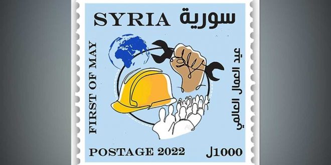 أصدرت المؤسسة السورية للبريد طابعاً بريدياً تذكارياً بمناسبة عيد العمال الذي يصادف الأول من أيار من كل عام.