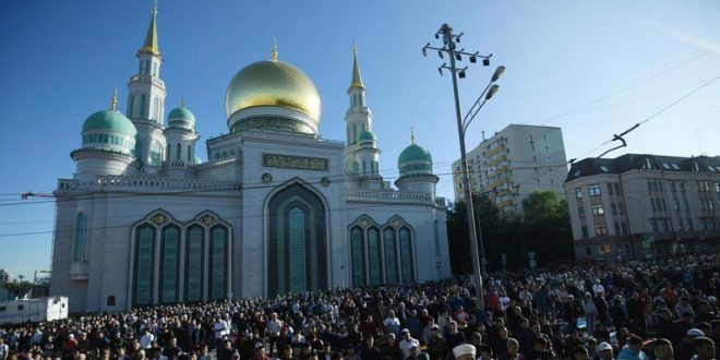ويشهد مسجد موسكو الكبير مثل كل عام في هذه المناسبة توافد آلاف المصلين منذ الصباح الباكر لأداء صلاة العيد.