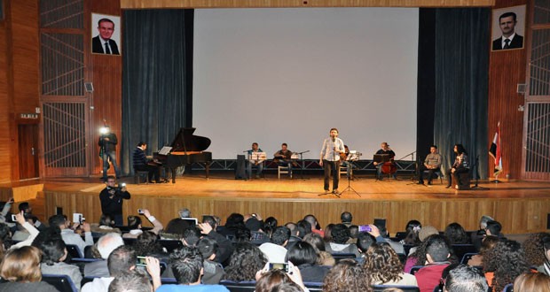 السويداء-سانا استضافت خشبة قصر الثقافة بالسويداء مساء اليوم أمسية موسيقية لجمعية أصدقاء الموسيقا