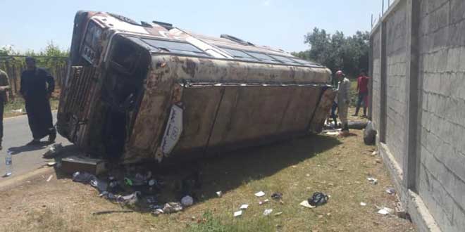 توفيت امرأة وأصيب 39 شخصاً اليوم جراء تدهور حافلة نقل ركاب على طريق حمص-تدمر بالقرب من مفرق فيروزة.