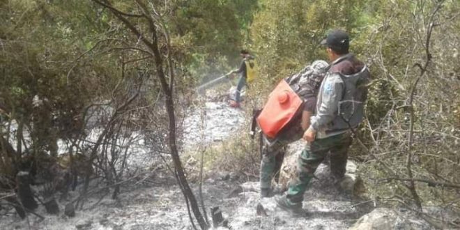 أخمد عناصر فوج إطفاء الحرائق بدائرة الحراج في مديرية زراعة طرطوس حريقاً شب اليوم في الأراضي الزراعية والحراجية في قرية عويجان التابعة لمنطقة صافيتا بريف طرطوس.