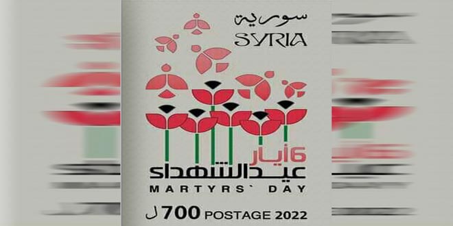 أصدرت المؤسسة السورية للبريد طابعاً بريدياً تذكارياً بمناسبة عيد الشهداء.