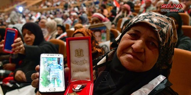 بمناسبة عيد الشهداء كرمت محافظة ريف دمشق 705 من أسر وذوي الشهداء في المحافظة وذلك ضمن حفل أقيم اليوم بقصر المؤتمرات تخلله فقرات فنية وقصائد شعرية تغنت بحب الوطن وقيمة الشهادة قدمها فرع منظمة طلائع البعث بريف دمشق.