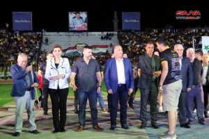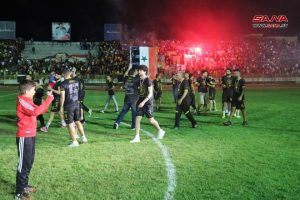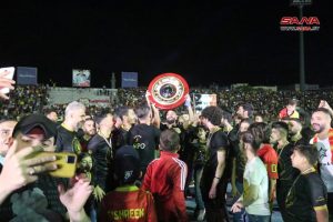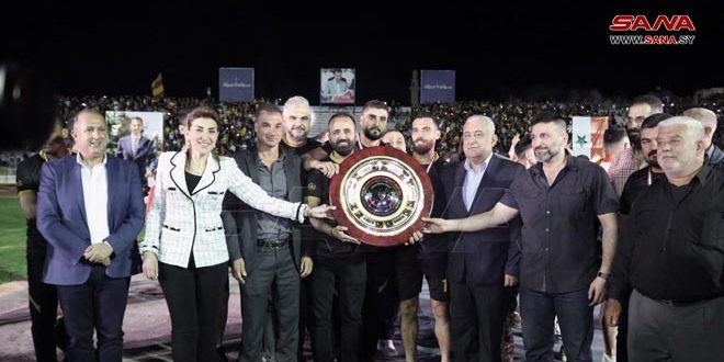 وسط أجواء احتفالية شهدها ملعب الباسل باللاذقية توج فريق تشرين رسمياً اليوم بلقب بطولة الدوري الممتاز لكرة القدم للمرة الثالثة على التوالي والخامسة بتاريخه.