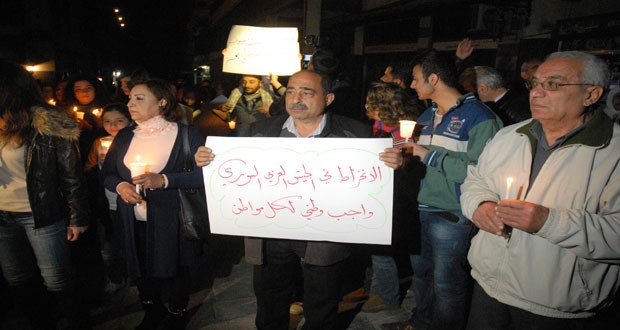 مسيرة شموع في باب توما تدعو للانخراط في صفوف الجيش العربي السوري