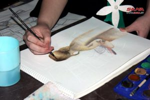 وحول المعرض الذي حمل عنوان “طوق الياسمين” أوضحت الفنانة التشكيلية تمام المقدم التي قامت بتنظيم المعرض في تصريح لـ سانا أنه بمثابة دعوة للفرح في أيام الربيع لتكون انطلاقة جديدة للمشاركين من مركزها الخاص لتعليم الرسم حيث يشارك الكثيرون منهم للمرة الأولى وقدم كل واحد منهم ما يزيد عن خمسة أعمال تنوعت بين الرسم بالرصاص والألوان الخشبية والزيتية إضافة إلى الحرق على الخشب والضغط على النحاس واللوحات المشغولة من الصوف ولف الورق.