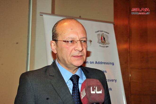 معاون وزير الصحة الدكتور أحمد ضميرية بين الأضرار الكبيرة في البنى التحتية للمنشآت الصحية التي خلفتها الحرب الإرهابية على سورية إلى جانب تداعيات العقوبات القسرية أحادية الجانب وانتشار جائحة كورونا وأثرهما المباشر على الخدمات الصحية مبيناً أهمية التنسيق لتحقيق أهداف التنمية في سورية في ضوء برنامج سورية ما بعد الحرب وفق مراحله الأربع ولا سيما مرحلة التعافي المبكر.