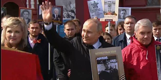 انطلقت في موسكو اليوم مسيرة فوج الخالدين تكريماً لجنود الحرب الوطنية الروسية العظمى بمشاركة الرئيس الروسي فلاديمير بوتين الذي حمل صورة أبيه.