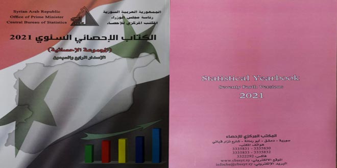 أصدر المكتب المركزي للإحصاء الكتاب الإحصائي السنوي “المجموعة الإحصائية لعام 2021” والذي يتضمن بيانات إحصائية عن النشاطات الاقتصادية والاجتماعية والديمغرافية وغيرها في سورية.