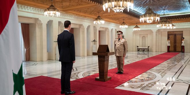 واستقبل الرئيس الأسد وزير الدفاع وزوده بتوجيهاته وتمنى له النجاح والتوفيق في أداء مسؤولياته.