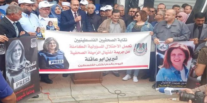 من جانبه اعتبر عضو الأمانة العامة لنقابة الصحفيين الفلسطينيين ذيب عمارة أن ما جرى من استهداف للصحفية أبو عاقلة وللصحفيين من قبلها يتطلب توفير الحماية للصحفيين من جرائم الاحتلال الذي لا يفرق بين الصحفيين وغيرهم لافتاً إلى أن اغتيالها جريمة مدبرة تتطلب وقفة جادة تجاه جرائم الاحتلال البشعة في كل المحافل الدولية.
