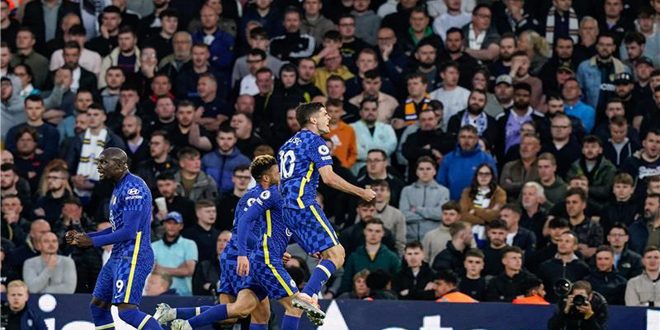 سجل ثلاثية البلوز مايسون مونت وكريستيان بوليسيتش وروميلو لوكاكو في الدقائق 4 و55 و83 وبذلك رفع تشيلسي رصيده إلى 70 نقطة في المركز الثالث بفارق 4 نقاط أمام أرسنال الذي يلعب غداً ضد توتنهام وازداد وضع ليدز صعوبة في البقاء بالبريميرليغ بعد تجمد رصيده عند 34 نقطة في المركز 18.