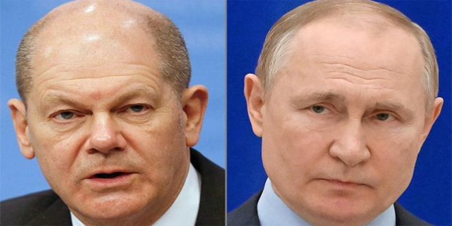 بحث الرئيس الروسي فلاديمير بوتين هاتفياً اليوم مع المستشار الألماني أولاف شولتز تطورات الأوضاع في أوكرانيا.