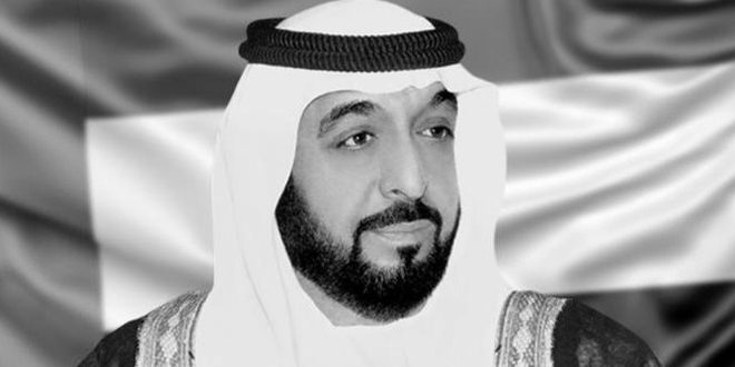 وتقدم الرئيس الأسد باسمه وباسم الشعب العربي السوري لقادة دولة الإمارات العربية المتحدة وللشعب الإماراتي الشقيق بأحر التعازي القلبية وخالص المواساة لهذا الفقد الجلل سائلاً الله للفقيد الرحمة وفسيح الجنان وأن يجنب الإمارات وشعبها كل مكروه وأذى.