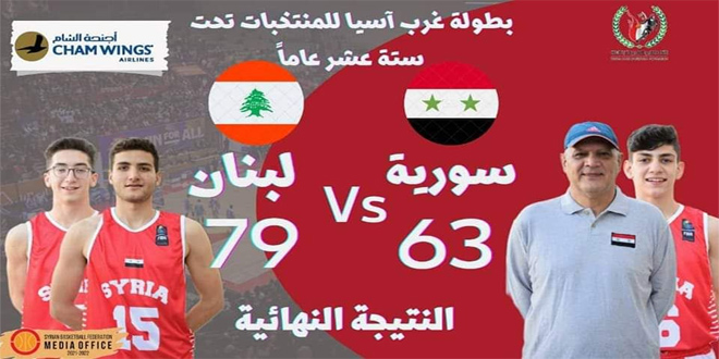 خسر منتخب سورية للناشئين بكرة السلة اليوم أمام نظيره اللبناني بنتيجة 79-63 نقطة في مباراته الثالثة في بطولة غرب آسيا دون 16 عاماً المقامة في العاصمة الأردنية عمان.