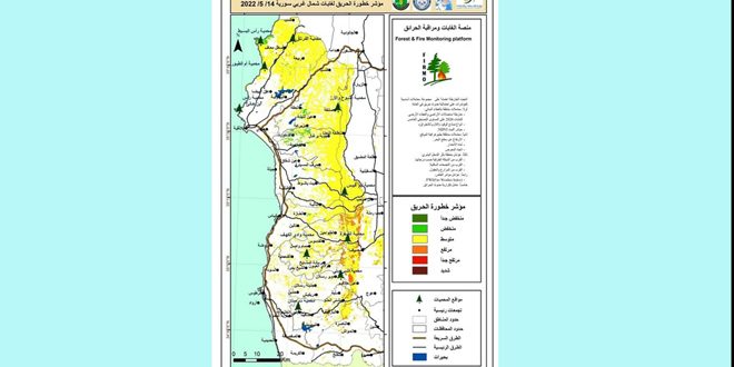 أعلنت منصة الغابات ومراقبة الحرائق “فيرمو” أن خرائط مؤشرات خطورة الحرائق لغابات شمال غرب سورية تشير اليوم إلى أن مستويات الخطورة المتوسطة هي السائدة على أغلب المواقع.