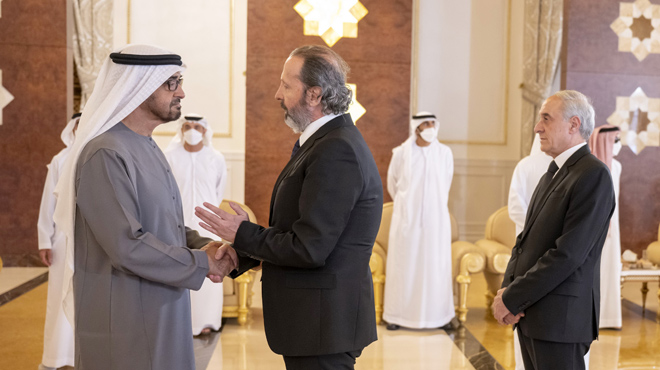 ممثلاً السيد الرئيس بشار الأسد أدى وزير شؤون رئاسة الجمهورية منصور عزام والوفد المرافق اليوم واجب العزاء بوفاة المغفور له الشيخ خليفة بن زايد آل نهيان.