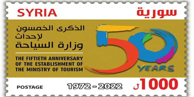 أصدرت المؤسسة السورية للبريد طابعاً بريدياً تذكارياً بمناسبة الذكرى الخمسين لإحداث وزارة السياحة التي تصادف اليوم.