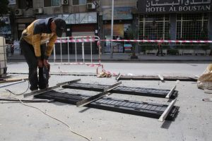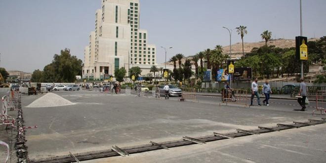 تتابع محافظة دمشق أعمال تأهيل وصيانة فواصل التمدد للطريق الممتد من نهاية مبنى وزارة السياحة من فندق البستان وحتى فندق سميراميس عند التقاطع المروري بمنطقة فكتوريا.