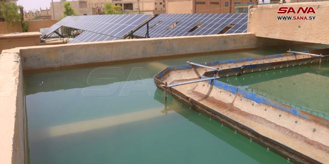 أنهت المؤسسة العامة لمياه الشرب والصرف الصحي في محافظة دير الزور تنفيذ مشروع (إعادة تأهيل مجموعة ضخ المياه الصافية) وتشغيلها على الطاقة الشمسية في محطة المياه الرئيسة بمدينة الميادين.