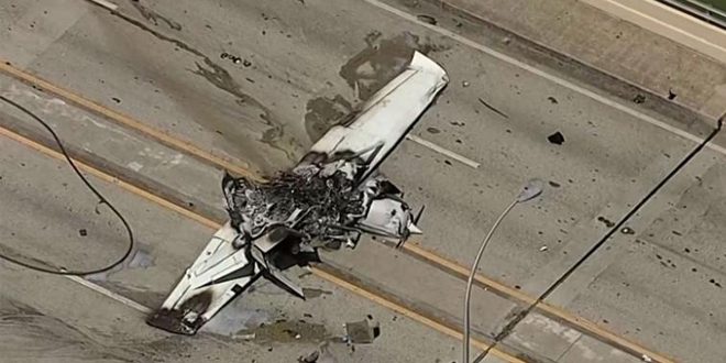وقال مسؤولون في إدارة الطيران الفيدرالية: إنه كان هناك ثلاثة أشخاص على متن طائرة سيسنا 172 ذات المحرك الواحد التي تحطمت ما أدى إلى سقوطها واصطدامها بمركبة قبل احتراقها.