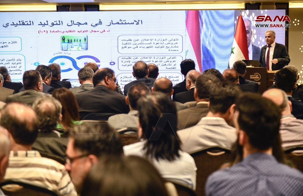 بدوره مدير تنظيم قطاع الكهرباء الدكتور محمد بسام درويش تحدث عن التشريعات الناظمة للاستثمار في قطاع الكهرباء التي تشجع المستثمرين على إقامة مشاريع توليد وتوزيع الكهرباء والطاقات المتجددة فيما تحدثت المهندسة نور الخضرة عن أساليب التعاقد على مشاريع الطاقات المتجددة وشراء الطاقة المنتجة منها.